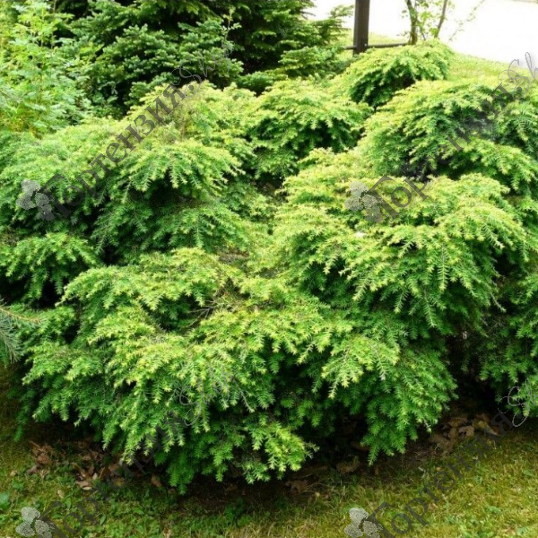 Интересное и необычное по форме карликовое хвойное деревце. Купить тсугу Джеделох - значит привнести в сад сказочную атмосферу. Тсуга канадская ‘Jeddeloh’ больше всего подходит для изысканных и утонченных садовых композиций в стиле каменистых горных склонов. Взрослое растение, в среднем, не превышает 1,5 метров. Растет медленно. Годовой прирост 2-3см. Хвоя густая, жесткая, темно-зеленая. Ветви тонкие, гибкие, веерообразные, густые, направлены вниз. Издали тсуга Джеделох немного напоминает фонтанчик. Со временем Тсуга канадская ‘Jeddeloh’ разрастается вширь, диаметр кроны достигает 1,5-2 метров. В целом, это растение довольно неприхотливо и отличается высокой морозоустойчивостью.
