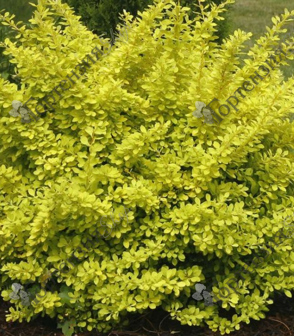 Плотный округлый кустарник до 80см высотой и до 1м в диаметре. Молодые побеги желтовато-зеленого цвета. Листья мелкие, яйцевидные до 2см длиной золотисто-желтые, осенью краснеют, становясь оранжевыми.