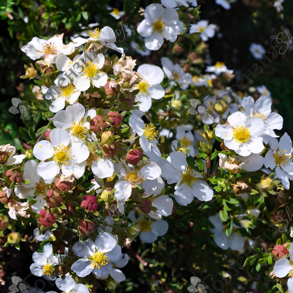 Лапчатка кустарниковая Белла Бьянка (Potentilla fruticosa 'Bella Bianca') – кустарник высотой 90 см и шириной до 1 м, с подушковидной плотной кроной. Листья похожи на маленькие лапки, серо-зелёного цвета. Цветки белые, полумахровые. Декоративно смотрится в рабатках, миксбордерах, в групповых посадках, морозостойкость до -40С.