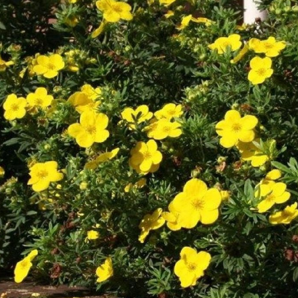 Невысокий кустарник с густой компактной кроной округлой формы. Высота – до 1,2 м, диаметр – 1,0-1,2 м. Ветви пряморастущие, темно-коричневого цвета у основания, к верхушке окраска светлее. Стебли тонкие, прочные, гибкие. Молодые побеги бледно-зеленые с ворсистой поверхностью.Голдстар в год дает средний прирост около 15 см, хорошо держит форму на протяжении всего периода вегетации, не требует постоянного формирования кроны. Цветки простые, разнополые, состоящие из 5 округлых лепестков ярко-желтого цвета, диаметром – 4-5 см с бархатистой крупной сердцевиной. Продолжительность цветения лапчатки – с июня по сентябрь.