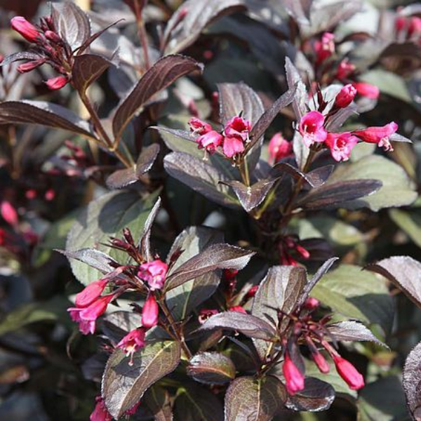 Вейгела Виктория (Weigela florida 'Victoria' ) - красивоцветущий кустарник. Высота и диаметр кроны около 1,5 м. Листья темно-зеленый с темно бордовым почти фиолетовым оттенком. Цветки вейгелы появляются в июне-июле, темно-розовые,  3-4 см. Вейгела отлично дополняет композиции из хвойных растений, хорошо смотрится в групповых посадках и одиночных. Почвы предпочитает плодородные, дренированные. Морозостойкость -29С.